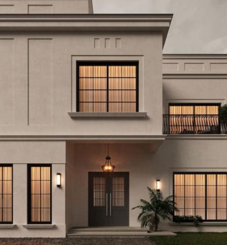 - اللون الرمادي: خيار مثالي لتلوين الواجهات الخارجية بفضل طابعه المحايد.